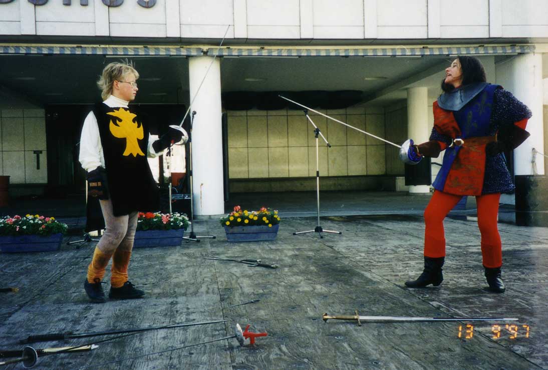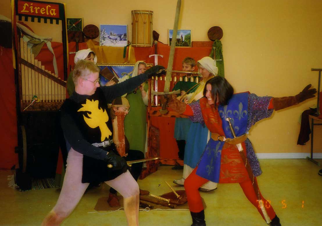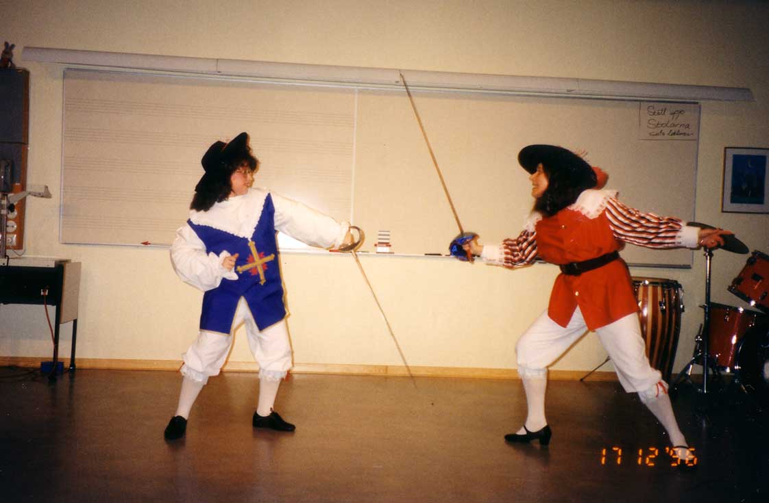 na školním představení Navestadskolan jako mušketýři