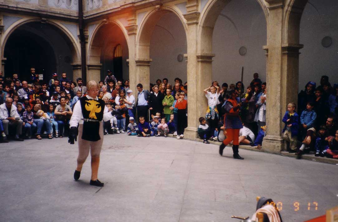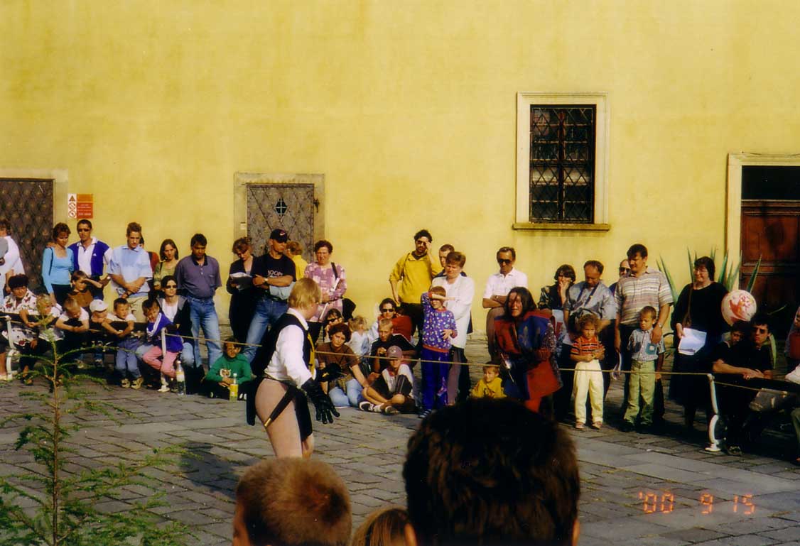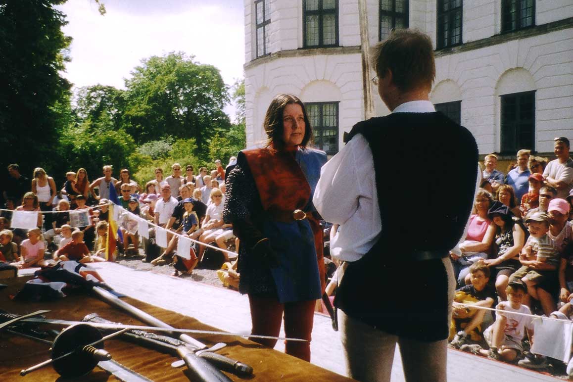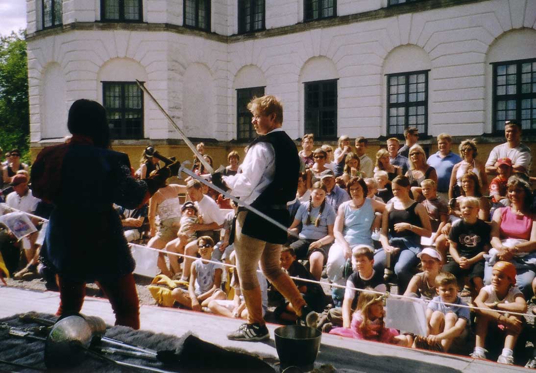 dvě představení šermu na dvou nádvořích zámku a jedna prezentace šermu na scéně
